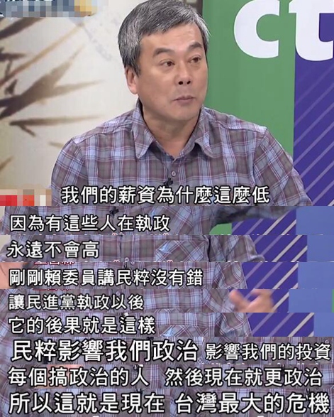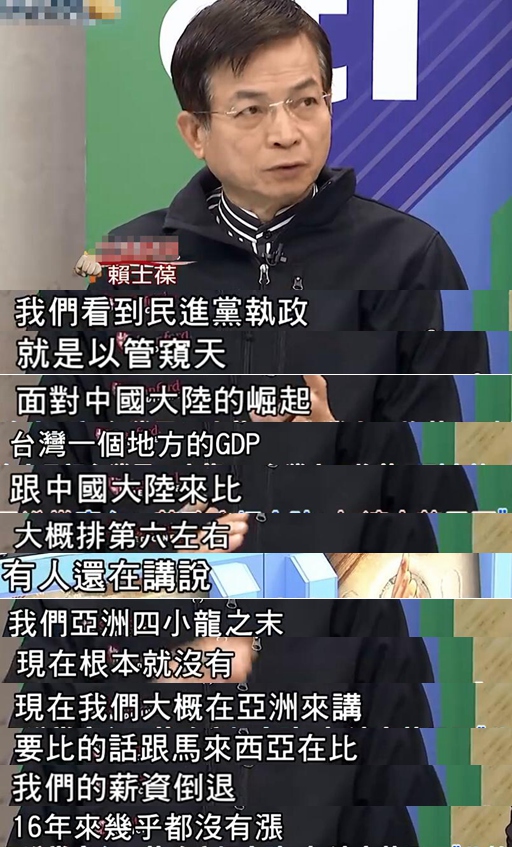 民代赖士葆就指出,台湾薪资已经16年几乎没涨过,而在民进党执政后更用“以管窥天”的心态因应世界大趋势,“有人说我们是‘亚洲四小龙’之末,现在根本就没有”。他更强调,如今大陆已经崛起了,而台湾的GDP在大陆只能排第六或第七而已;黄智贤也直言,人家那“三小龙”并不承认台湾是第四小龙,“叫做台湾是一条虫”……