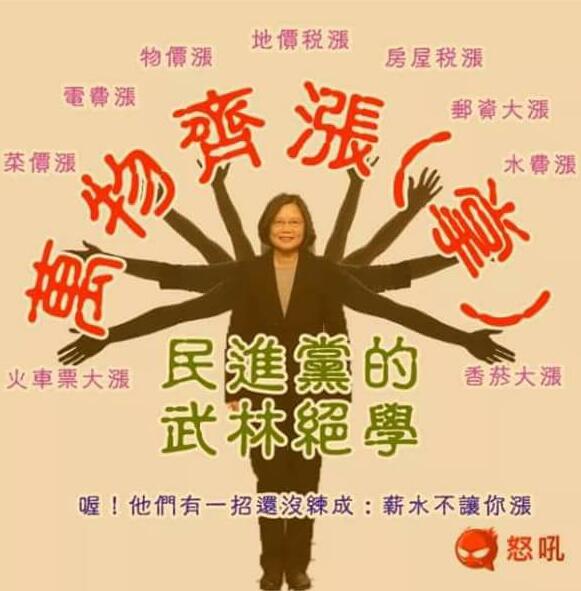 虽然蔡当局表示,去年全台民众的平均月薪比2016年成长了1.6%、通膨也维持在1%,算是稳定,但许多民众却依旧深叹万物齐涨,唯独薪水停滞不前甚至大不如前。有网友用“企业出走,加重课税,万物齐涨,薪资萎缩”16个字总结了民进党的执政政绩;台湾资深气象专家李富城更对此痛批“台湾真的是个鬼岛”。