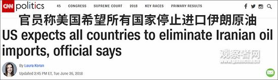 美国有线电视新闻网(CNN)26日报道,这名官员补充说,目前从德黑兰购买石油的所有国家都不例外,“我们将此事定为国家安全层级最高的事项之一,我认为我们不会给予(任何国家)豁免,尽管我不太愿意说‘永远零豁免’这种话。”
