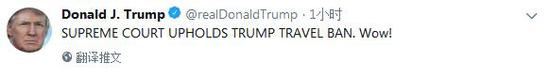 当地时间周二(26日),美国最高法院裁决支持特朗普针对一些中东非洲国家的旅行禁令。对此,特朗普第一时间在推特回应称,最高法院支持我的旅行禁令,棒极了!