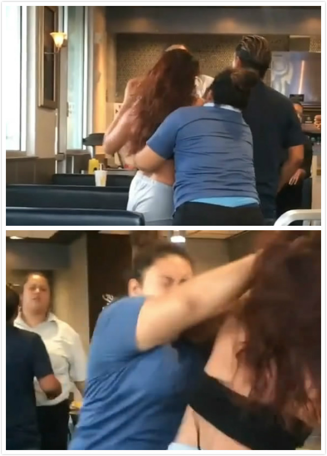 另一名在场的顾客拍下了这起斗殴的视频并将它发布在社交网站,目前尚不清楚事发的具体地点。