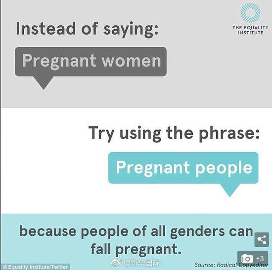 澳大利亚一女权组织呼吁使用更中性的名词来称呼孕者,而非“孕妇”。在他们近日发布的推文中,该组织建议使用“怀孕的人”(pregnant people)而非“怀孕的妇女”(pregnant woman),给出的理由是“所有性别的人都可以怀孕”。这条帖子引发网友热烈讨论,有人评论道“只有女性可以怀孕,我的参考是科学,科学不关心你的感受”,有人吐槽说“作为一个25年的分娩护士,我敢肯定,我老婆肯定不会同意你的观点”……你怎么看?
